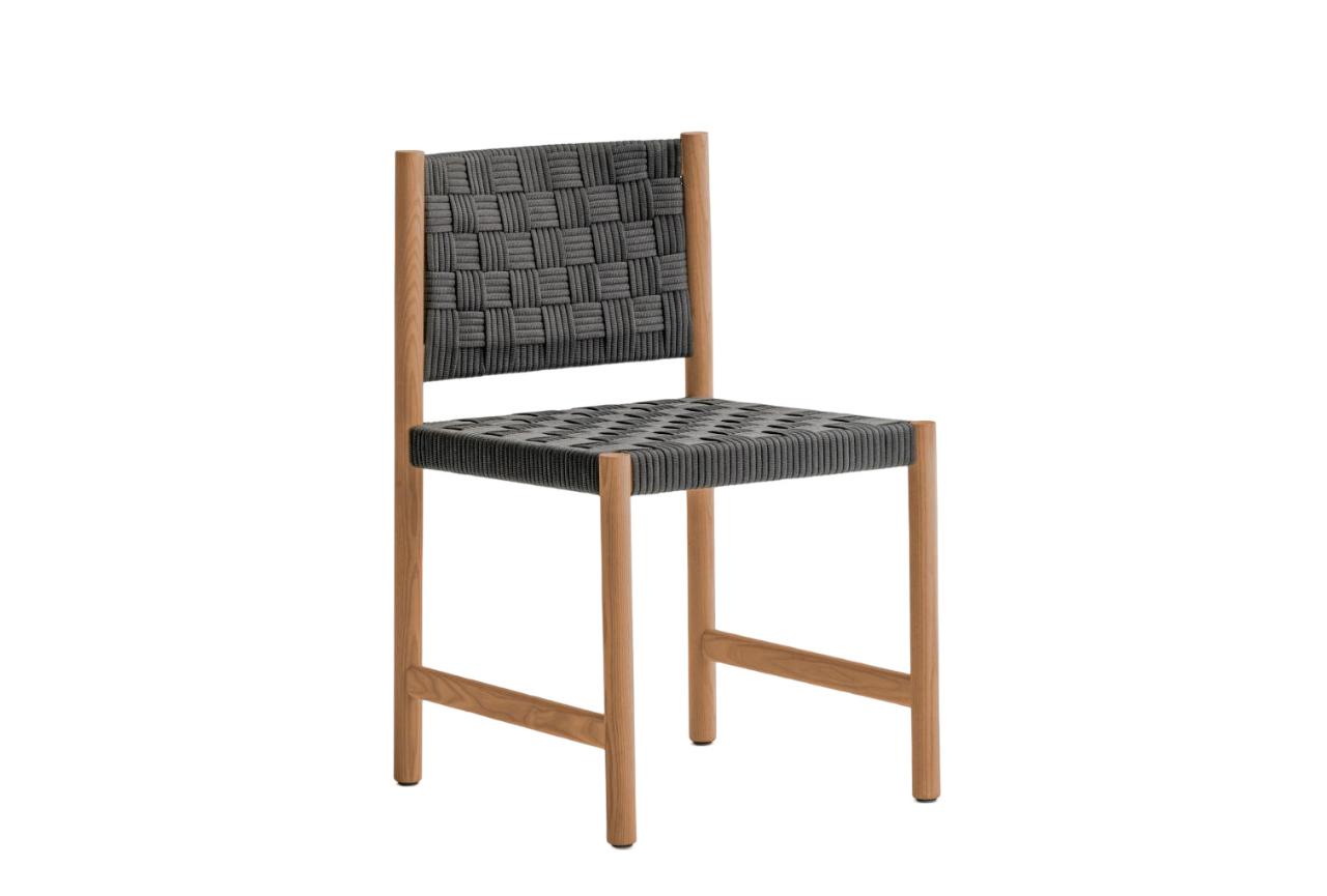 καρέκλα κατάλλη και για εξωτερικό χώρο από teak και αλουμίνιο, με χειροποίητο κάθισμα από ανακυκλώσιμη πολυπροπυλένη, άνετη και ανθεκτική.