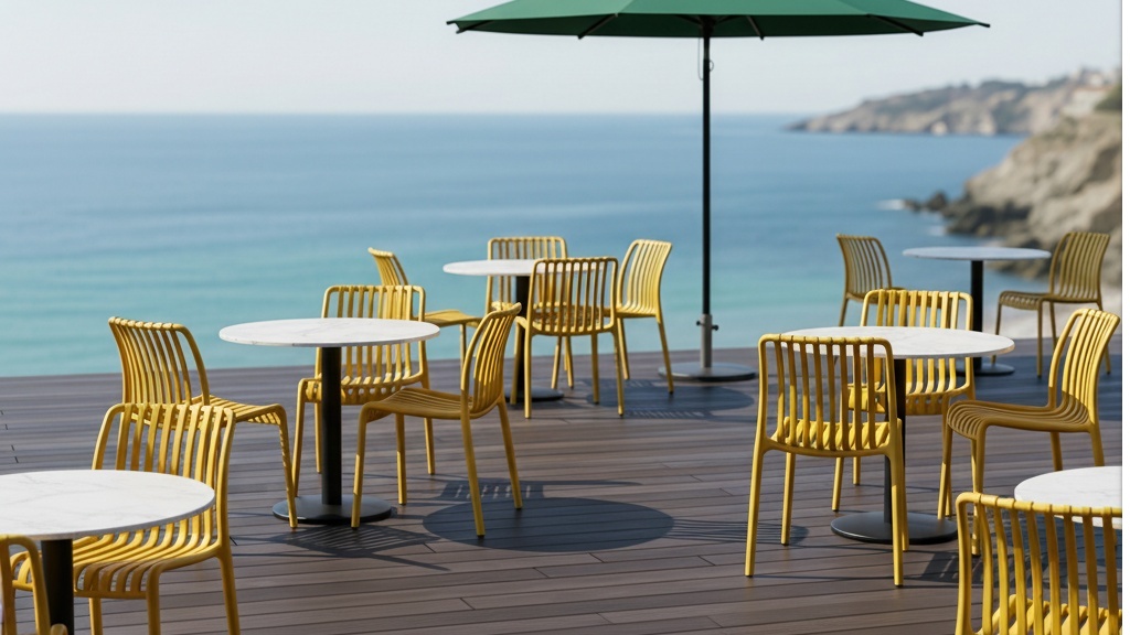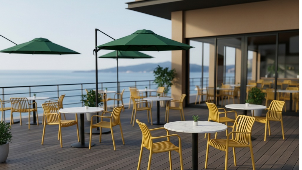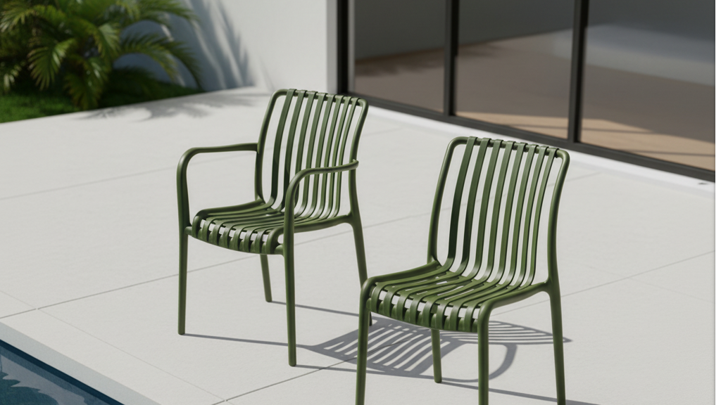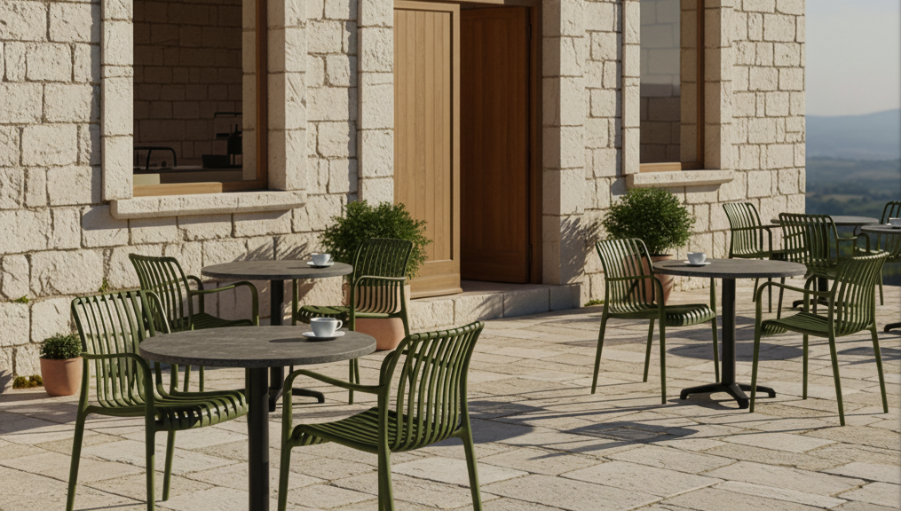 είναι ελαφριά, στοιβαζόμενη για εύκολη αποθήκευση και διατίθεται σε ποικιλία χρωμάτων, ιδανική για κήπους, βεράντες και επαγγελματικούς χώρους.