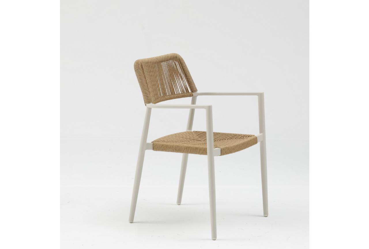 καρέκλα με μίνιμαλ σχεδιασμό και πλεκτή επιφάνεια καθίσματος και πλάτης. ο σκελετός είναι από αλουμίνιο με ηλεκτροστατική βαφή σε χρώμα επιλογής, κατάλληλος για χρήση σε εσωτερικούς και εξωτερικούς χώρους. η πλέξη προσδίδει φυσική υφή και αισθητική, ενώ ο συνδυασμός υλικών εξασφαλίζει ανθεκτικότητα και κομψότητα.