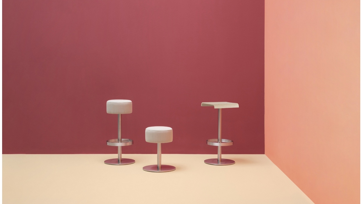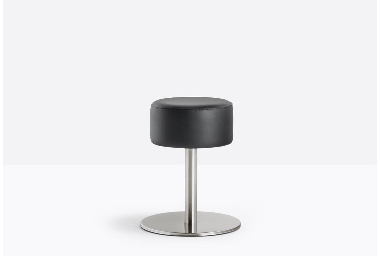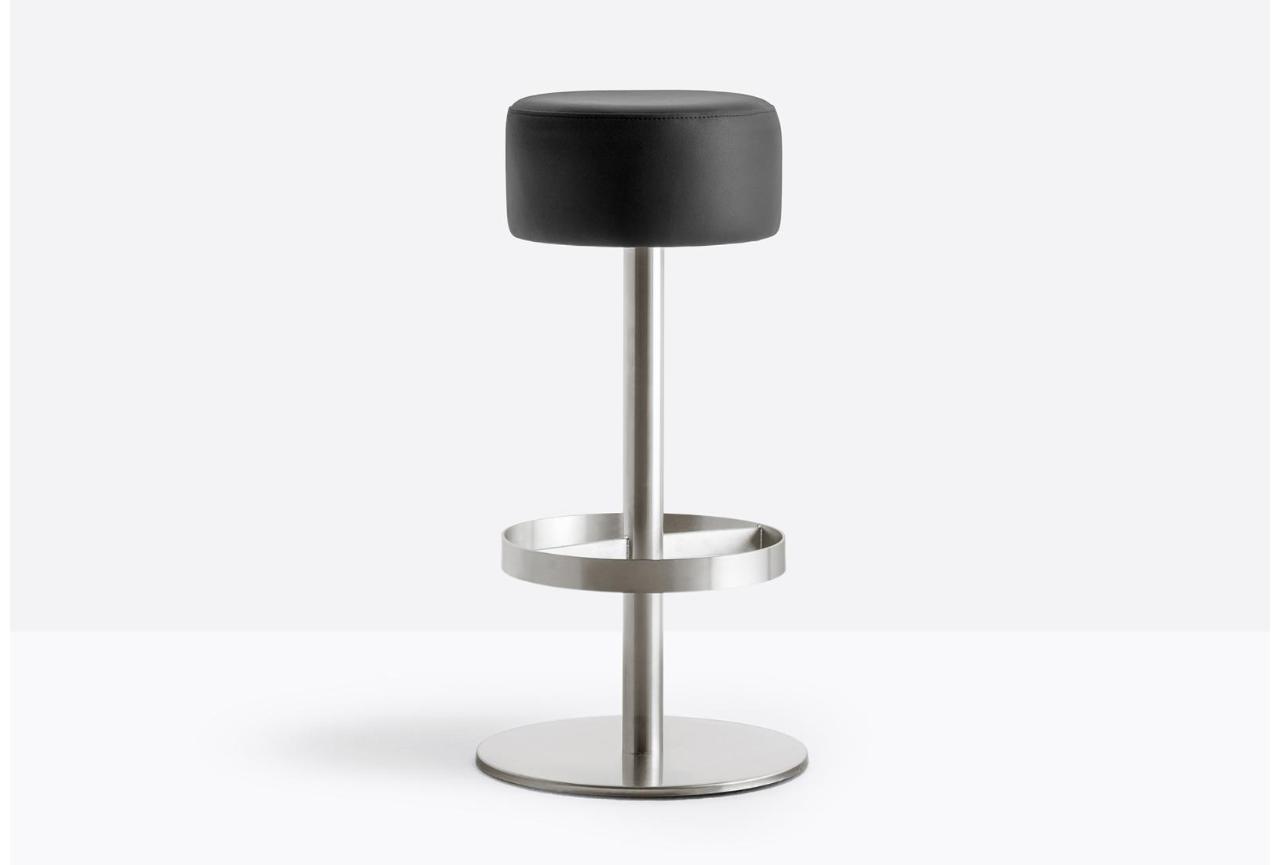 δομή από ανοξείδωτο ατσάλι, με χαρακτηριστικό κυλινδρικό κάθισμα και καμπυλωτό υποπόδιο συγκολλημένο στη στήλη με τεχνολογία λέιζερ. κεντρική βάση και υποπόδιο από ανοξείδωτο ατσάλι. διαθέσιμο και σε έκδοση με περιστρεφόμενο κάθισμα.